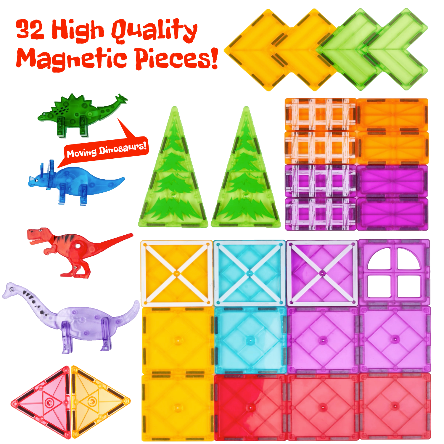 Magnetic Tiles – 32-Piece Dinosaur Building Set for Kids